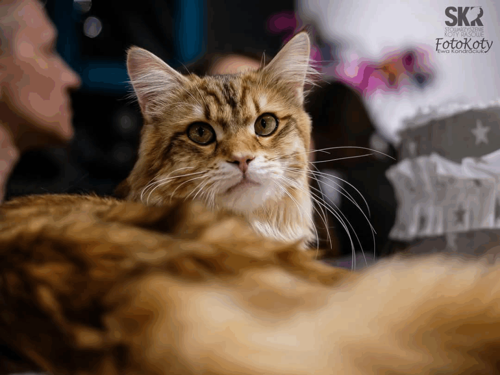 Ma kolor czarny złocisty bez bieli, co oznacza, że jego dzieci mogą mieć kolor czarny oraz rozjaśnienie złociste. Pucio rozpoczął nam linię złotych i bimetalicznych kotów. Oprócz tak pięknego i rzadkiego koloru przekaże dzieciom również wspaniały charakter. Nie ma nawet grama agresji. Jest bardzo otwarty na ludzi, kocha też inne koty.